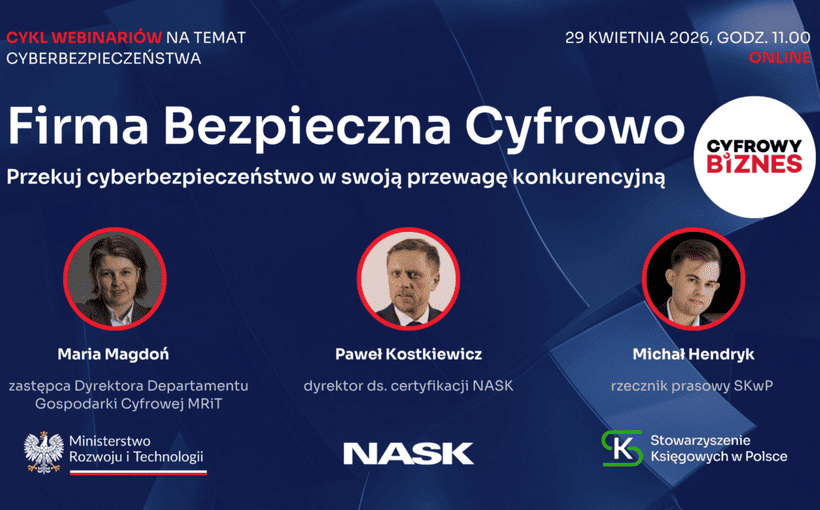 Stowarzyszenie Księgowych w Polsce (SKwP), Ministerstwo Rozwoju i Technologii (MRiT) oraz NASK – Państwowy Instytut Badawczy zapraszają na bezpłatny cykl webinariów poświęcony cyberbezpieczeństwu w firmach.