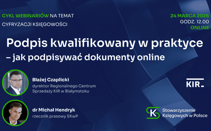 Stowarzyszenie Księgowych w Polsce (SKwP) oraz Krajowa Izba Rozliczeniowa S.A. (KIR) zapraszają na bezpłatny cykl webinariów organizowanych pod hasłem ”Cyfryzacja księgowości”.